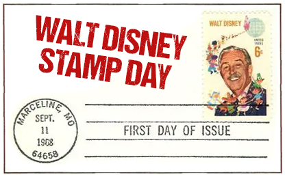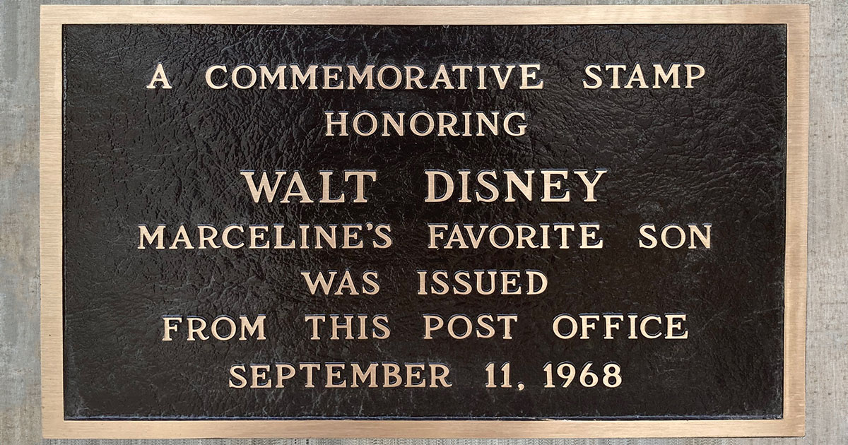 A commemorative stamp honoring Walt Disney – Marceline’s favorite son – was issued at the Marceline, Missouri Post Office on September 11, 1968 by the U. S. Post Office Department.