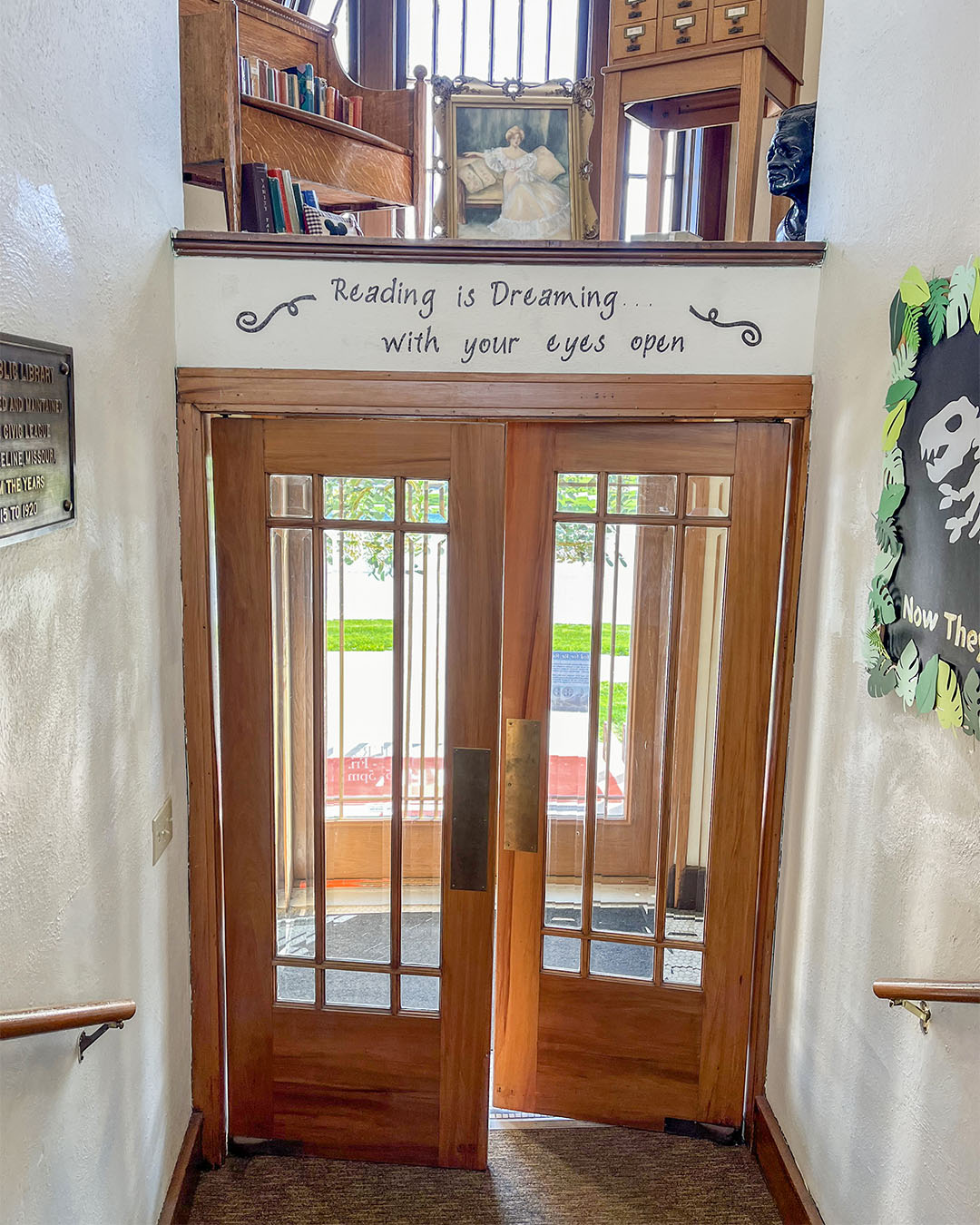The Marceline Carnegie Library submitted a photo of their entry doors for this year’s Preservation Month promotion “Welcome Home” which took place in May. “These doors have welcomed visitors to the library for 104 years. They are the gateway to anywhere. They inspire us to explore, and to fuel our imaginations. Many generations have crossed that magical threshold to the library. Inspiring to change their lives forever. This is where the adventure begins.”