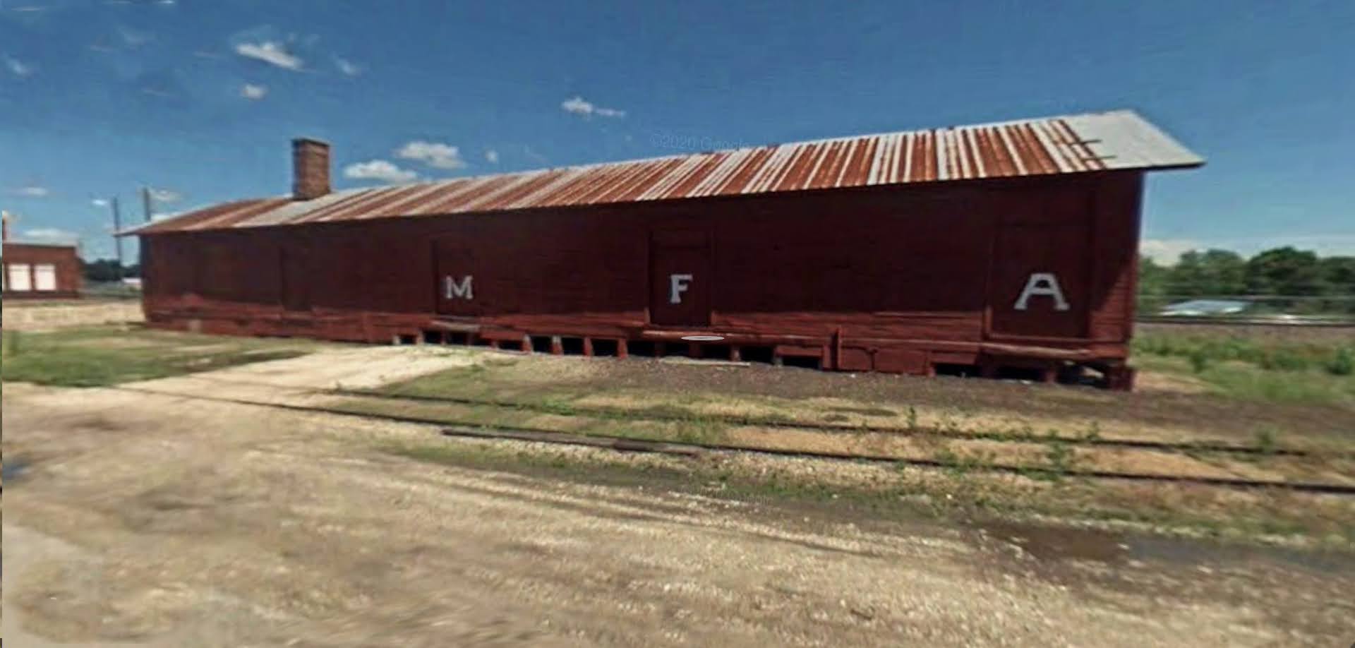 South of the train station stood the Santa Fe freight house. Box cars or flat cars were delivered there with goods or lumber, and later automobiles for local sale. Local folks will remember the letters “M-F-A” on its doors, when MFA used it for storage. BNSF no longer delivered freight here. In 2008 the building was carefully dismantled by Amish workers for the valuable timbers and lumber. It was well built.