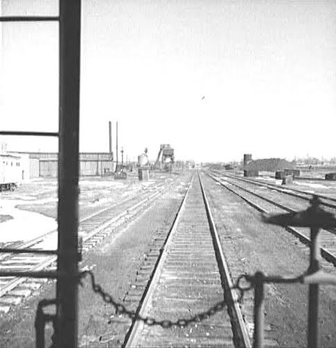 Next to the westbound track was a track that went through the coaling, sanding, and water spouts. Sand was (and still is) needed to help with traction on the rails. Clean sand was held in a heated concrete tower above the rails. (Heated sand drives out moisture, which could clump the sand or freeze it.) Nearby was the coaling tower, which was supplied with locally mined coal until 1953 when the Santa Fe retired its coal burning locomotives. Some oil burning steamers were kept in service for switching and local pickup and delivery.